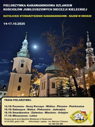 12. Ogólnopolska Pielgrzymka Karawaningowa na Jasną GóręROZPOCZĘCIE SEZONU 2025Termin stały na następne lata: IV niedziela kwietnia Termin: 26-27 kwietnia 2025 Program: SOBOTA 8.00-14.00 – zlot załóg na parkingu górnym (jak w latach ubiegłych) 14.30 – Msza św. na rozpoczęcie pielgrzymki (Kaplica Cudownego Obrazu) 15.30 – Droga Krzyżowa na Wałach21.00 – Apel Jasnogórski NIEDZIELA 9.30 – …