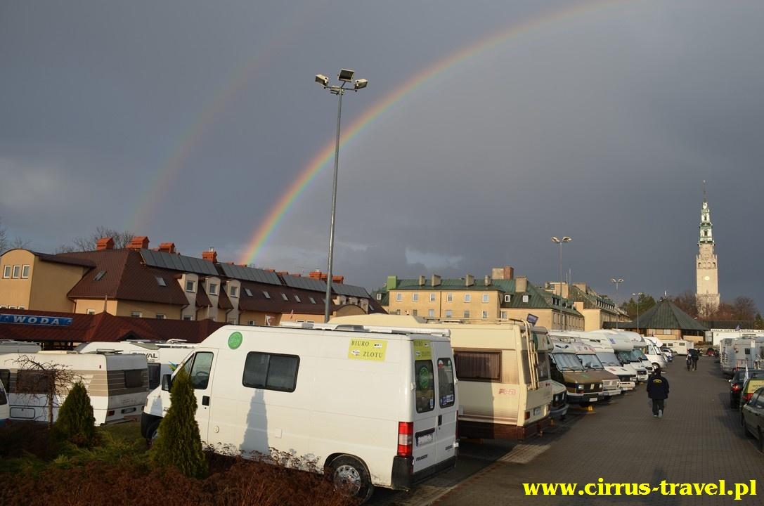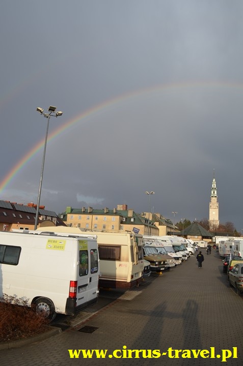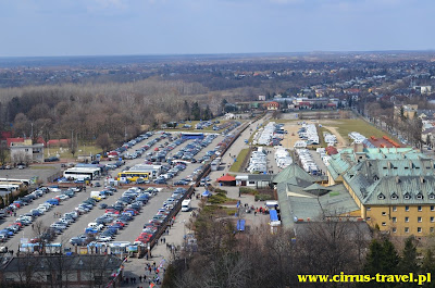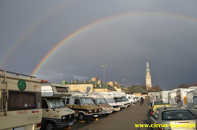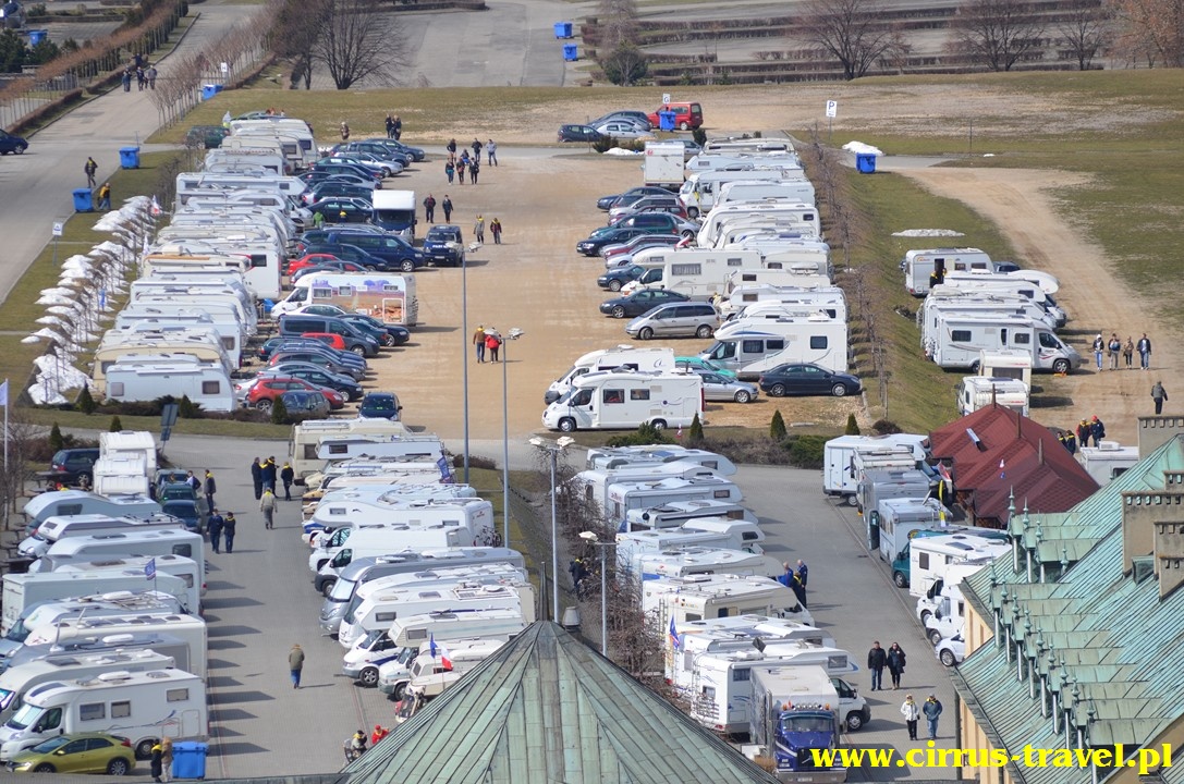 widać nasze „miasteczko karawaningowe” z wieży klasztornej. Dla wielu